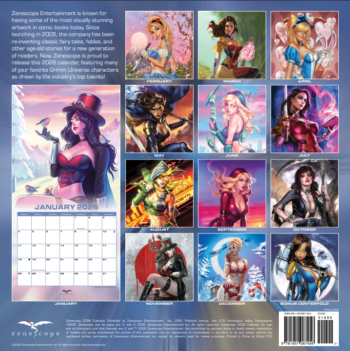 Zenescope Regular 2026 Calendar Share WhatsApp Deel Tweet Pin it Messenger Email Product form $16.00 Excl. VAT Quantity BUY NOW This item is a recurring or deferred purchase. By continuing, I agree to the cancellation policy and authorize you to charge my payment method at the prices, frequency and dates listed on this page until my order is fulfilled or I cancel, if permitted.