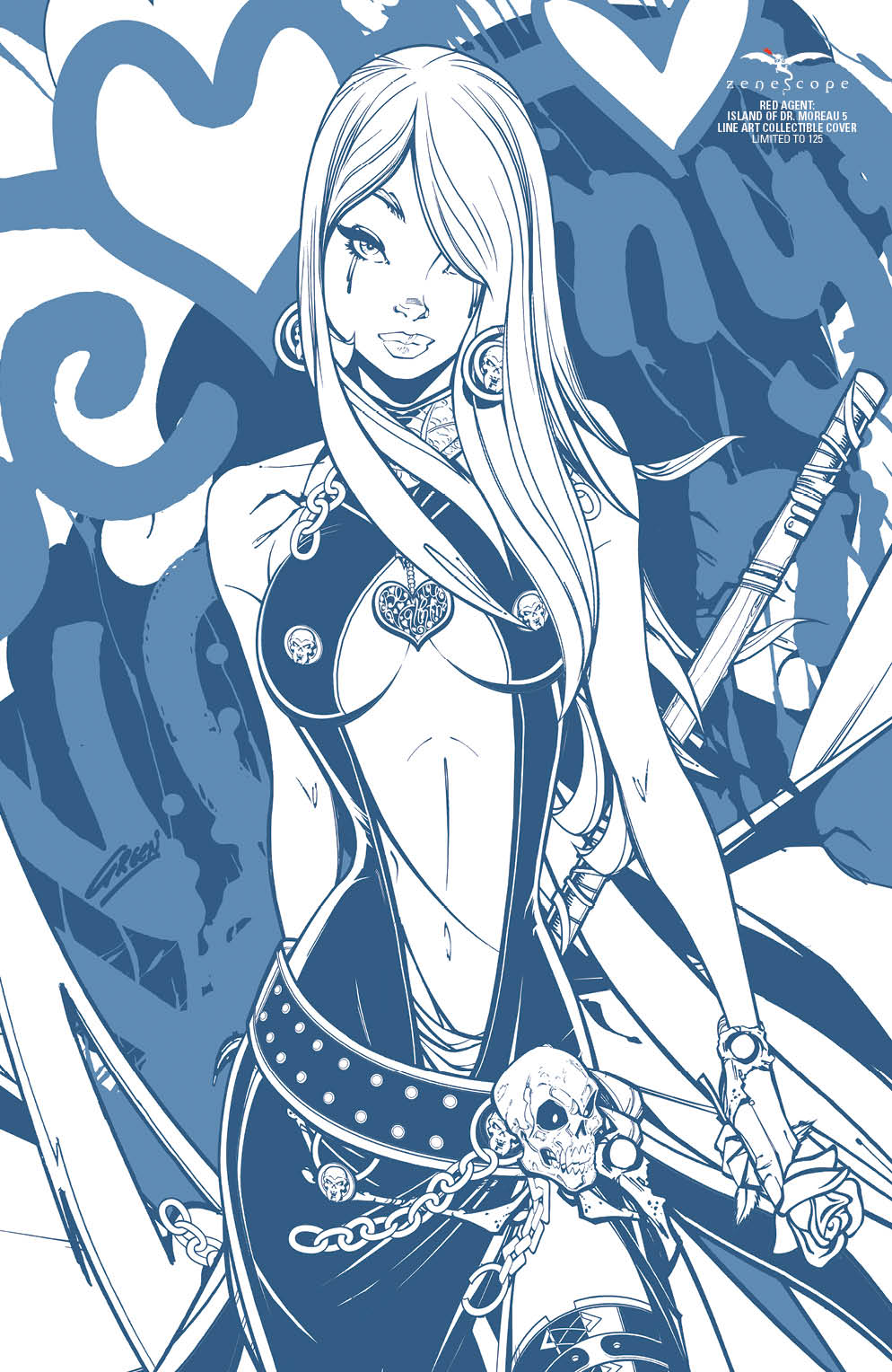 This bundle includes 1 copy of the Black, Red, and Blue variants of this awesome cover, featuring everyone's favorite Goddess of Death!  All 3 covers are LE 125 each.